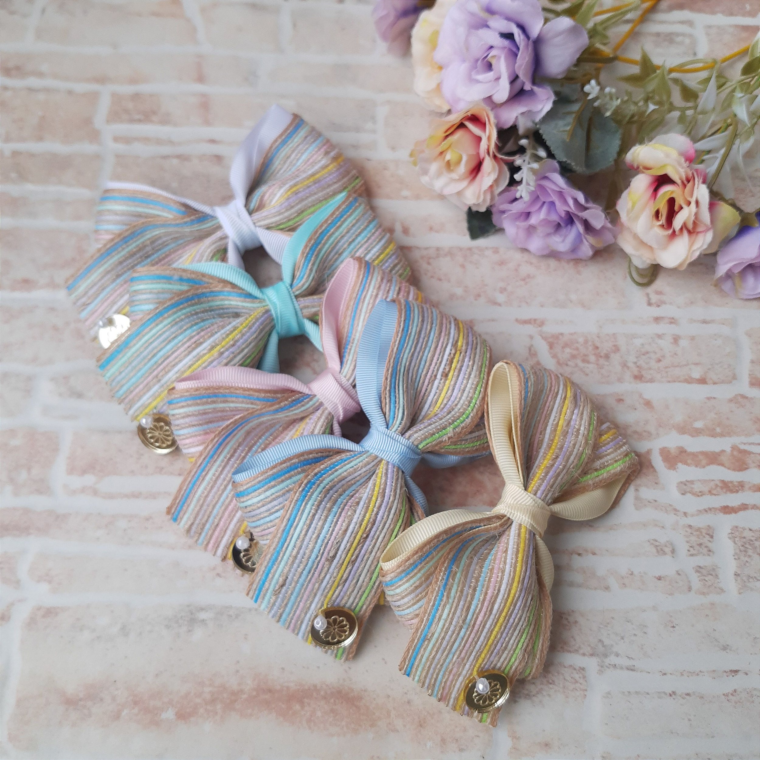 Laço Helô com fita de Juta nas cores Candy Colors com pingente tag da Logo. Você escolhe a cor do fundo! Dimensões aproximadas: Comprimento: cm Largura: cm ***Valor referente a unidade. ***As peças serão confeccionadas nas cores da foto como padrão, mas você pode alterá-las, basta enviar uma mensagem com seu pedido para ver a disponibilidade. *** O prazo de produção pode ser menor que o descrito conforme agenda e disponibilidade. *** Segurança: devido às peças miúdas, certifique-se de que as crianças pequenas sejam supervisionadas ao usarem esses acessórios.